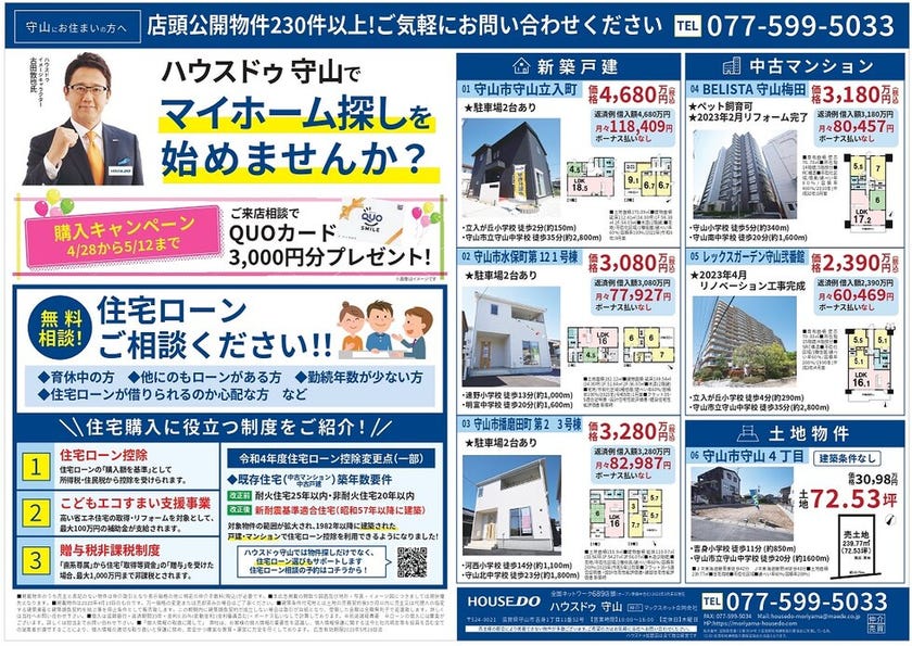 ハウスドゥ守山は4/28よりオープン致します。