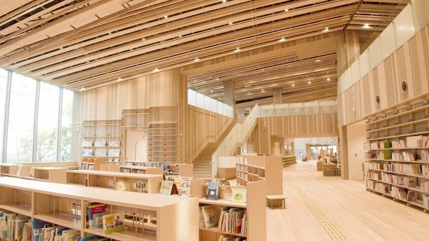 平成30年11月1日にリニューアルオープンした守山市立図書館のデザインは、東京オリンピックの新国立競技場の建築を手掛けるなど全国的に有名な建築家の隈研吾さんによるもので、県産の木材を多く使った開放的な作りが特徴です。