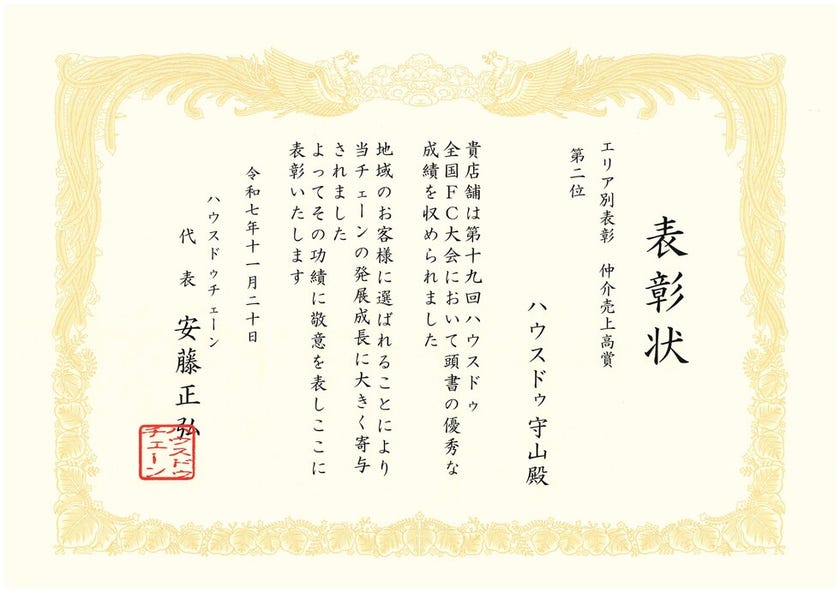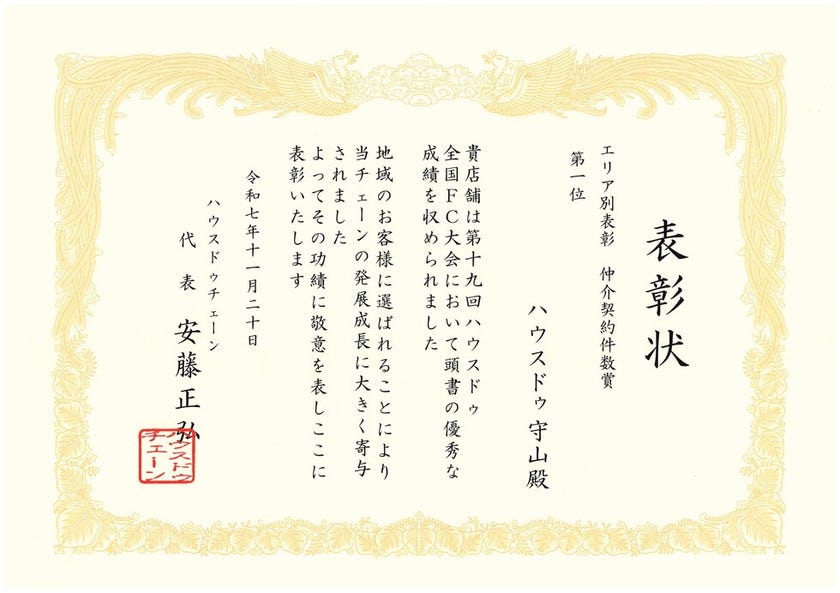 ハウスドゥ全国FC大会で近畿エリア1位を受賞