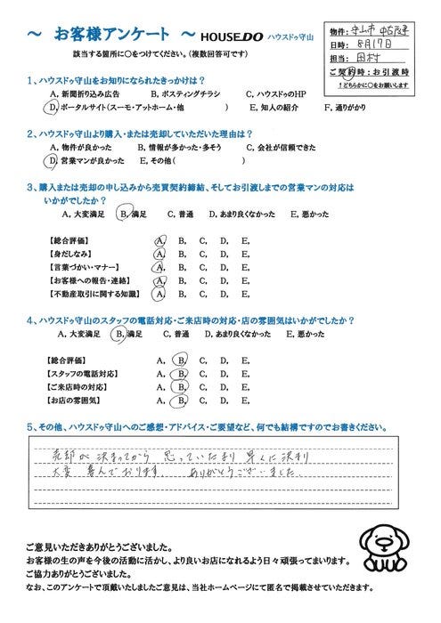 ハウスドゥ守山をご利用頂き、誠にありがとうございました。