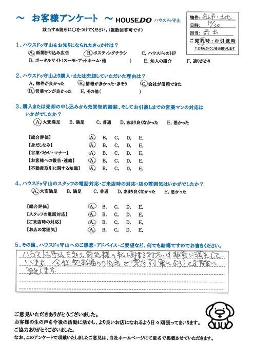 ハウスドゥ守山をご利用頂き、誠にありがとうございました。