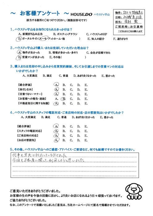 ハウスドゥ守山をご利用頂き、誠にありがとうございました。