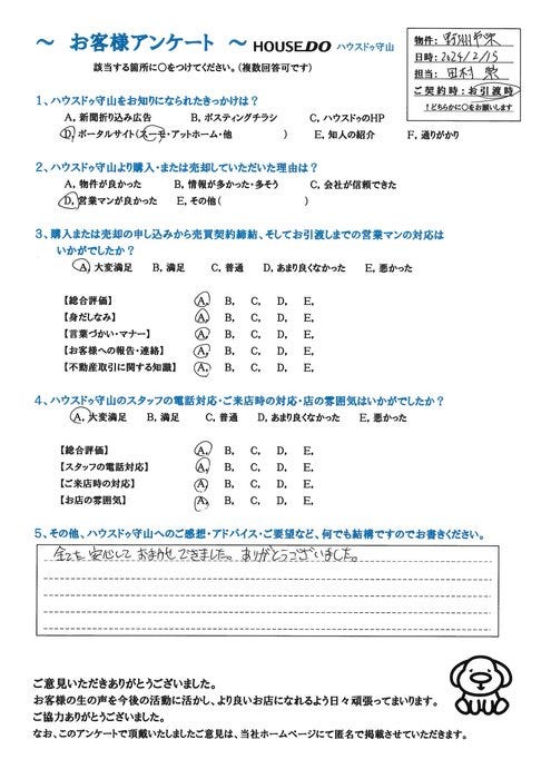 ハウスドゥ守山をご利用頂き、誠にありがとうございました。