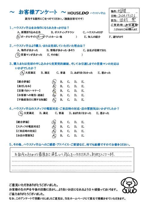 ハウスドゥ守山をご利用頂き、誠にありがとうございました。