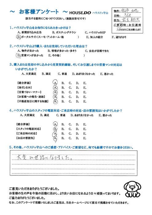 ハウスドゥ守山をご利用頂き、誠にありがとうございました。