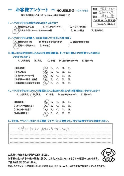 ハウスドゥ守山をご利用頂き、誠にありがとうございました。