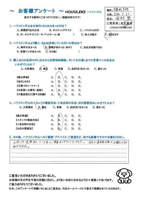 ハウスドゥ守山をご利用頂き、誠にありがとうございました。